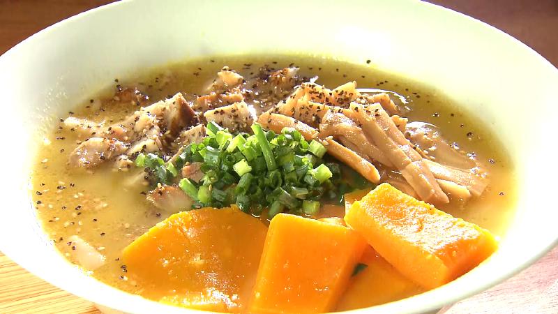 名物の塩ラーメンに今が旬のカボチャを加えてアレンジした一品。