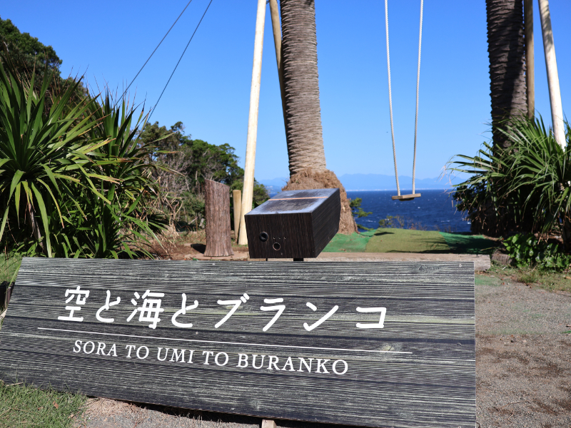 海側にむかって設置された「空と海とブランコ」は、こぎながら島のおいしい空気や心地よい風が、全身で感じられるでしょう。