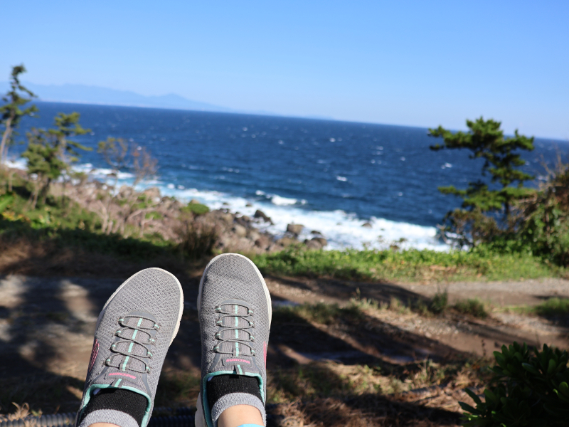 扉や大自然をバックにすれば、写真を撮る手が止まりません。扉の向こうには、美しい伊豆半島、海、空が広がっていました。