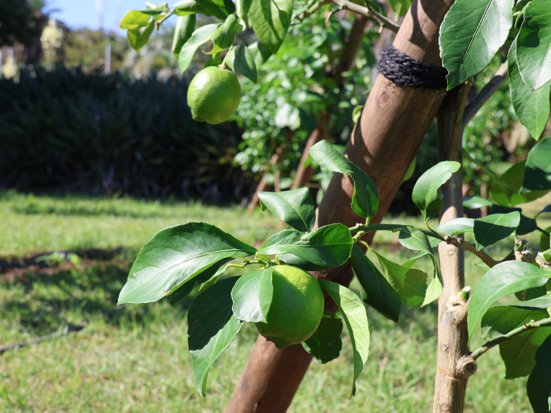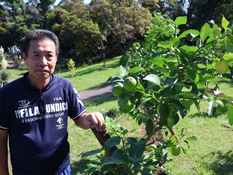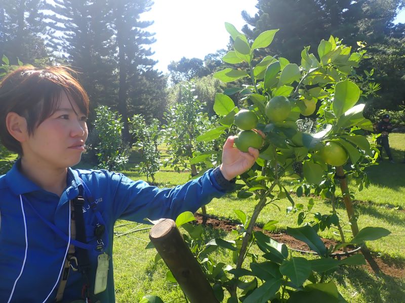 ユーレカレモンは、緑色の段階と黄色に熟してからとでは、味や香りに違いがあるそうです。レモンの育成や植樹の指導を行うスタッフに、それぞれの特徴について聞きました。