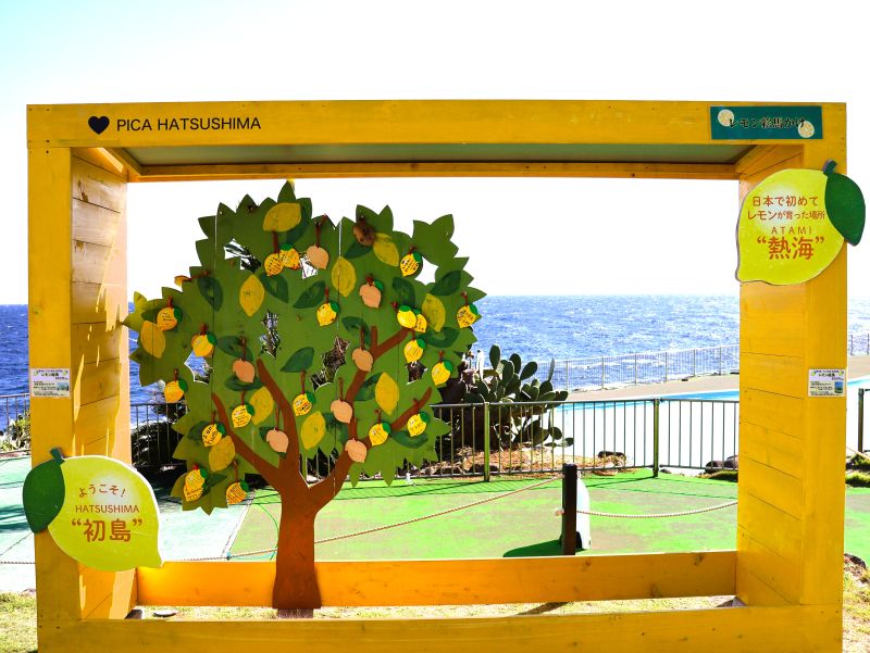 傍らには初島中に植えられているレモンの木が。ぜひ、初島レモンも入れて写真を撮ってみてください。