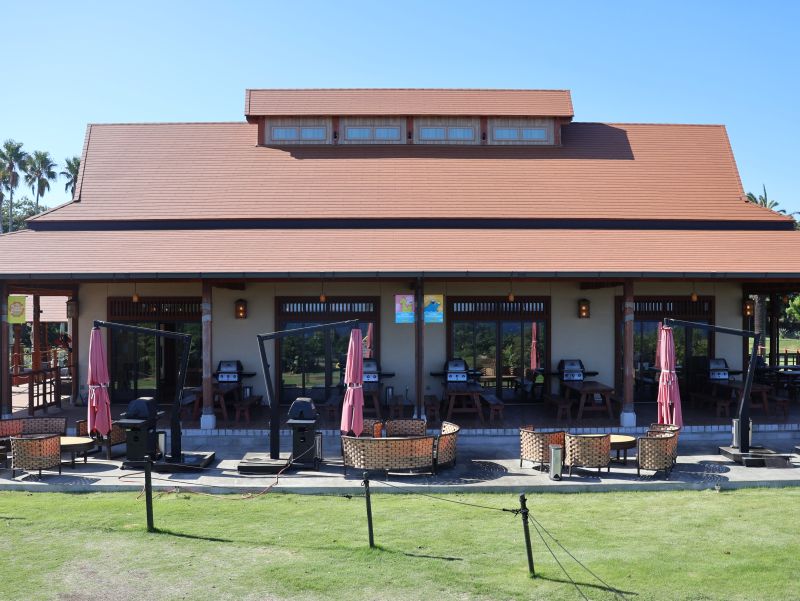 サザエさんを再現するのもよし、ゆったり座ってポーズを決めるのもよし。バックの緑と相まって、写真映えの1枚が撮れますよ。