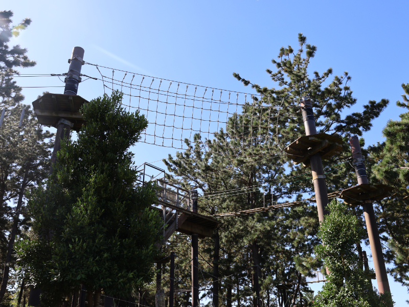 専用のハーネスを付けて、ロープの上を渡ったり飛び乗ったりして、森のなかを駆け抜けましょう。非日常を体感できる、初島ならではのアクティブスポットです。
