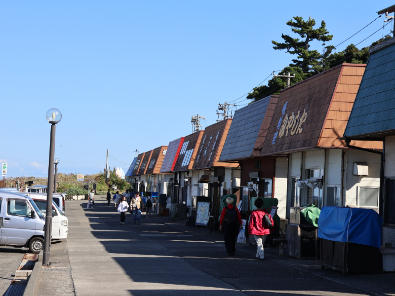 海沿いにずらっと店が並ぶ「食堂街」は、初島港から歩いてすぐの場所にあります。