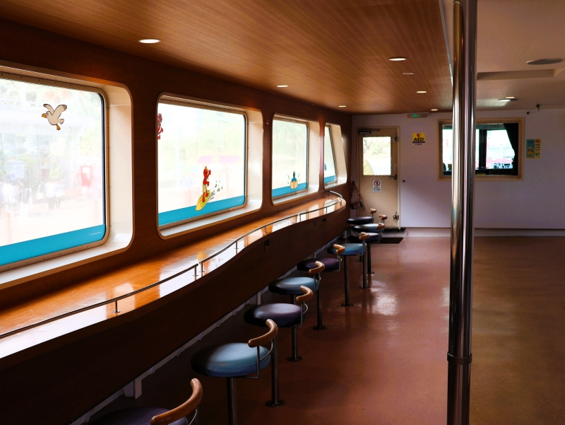 船内は明るく、座席も通路も開放的です。デッキに出れば、海や伊豆七島の景色が楽しめるため、あっという間の船旅となるでしょう。