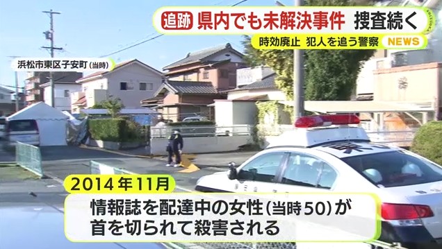 同じ年の11月当時の浜松市東区で情報誌を配っていた50歳の女性が首を切られ殺害されました。