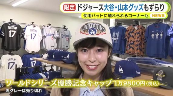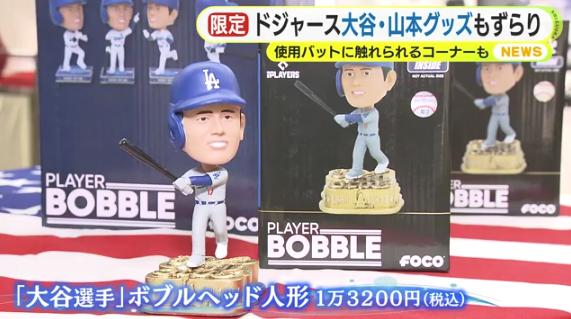 注目はドジャースのワールドシリーズ優勝を記念して作られたキャップや大谷選手のボブルヘッド、さらには日本人トリオのTシャツなど、普段はなかなか出会うことのできない商品が並びます。