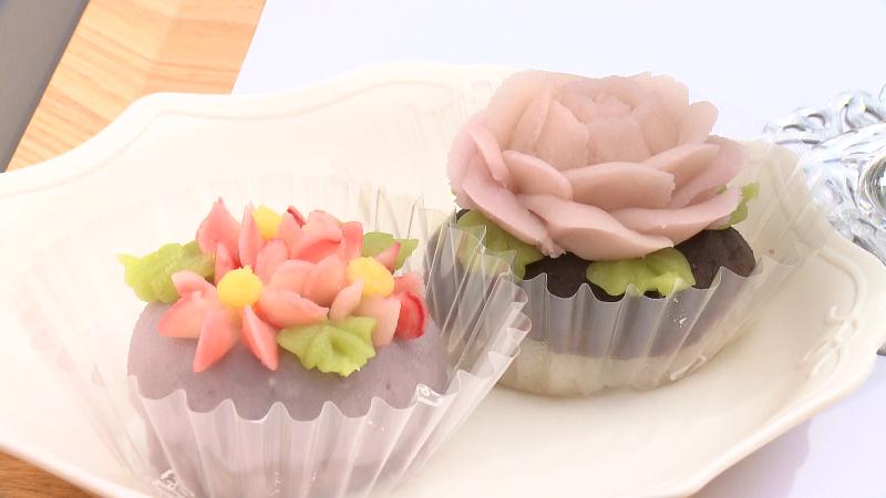 基本は白あんで、天然素材で色付けや香り付けをして花を作っています