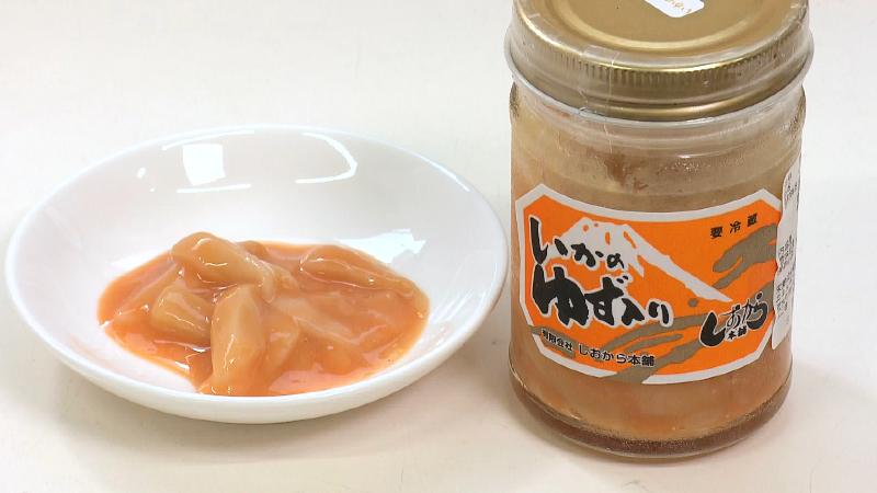 「いかのゆず入り(2本売り1340円/1600円※組み合わせにより変わります)」はユズがたっぷり。磯の味わいに爽やかさが加わります。