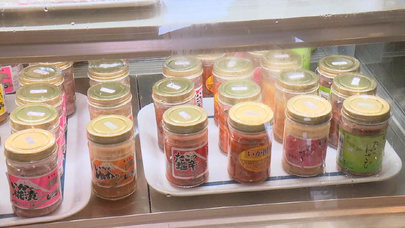 イカの塩辛、タコの塩辛はもちろん、カツオの塩辛やイカのゆず入りなど、珍しいものまで並んでいました。塩辛はすべて店のオリジナル商品とのこと。
