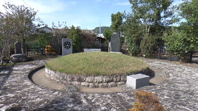 土がこんもりと盛られた墳墓を囲むように石畳が整備された一角がありました。