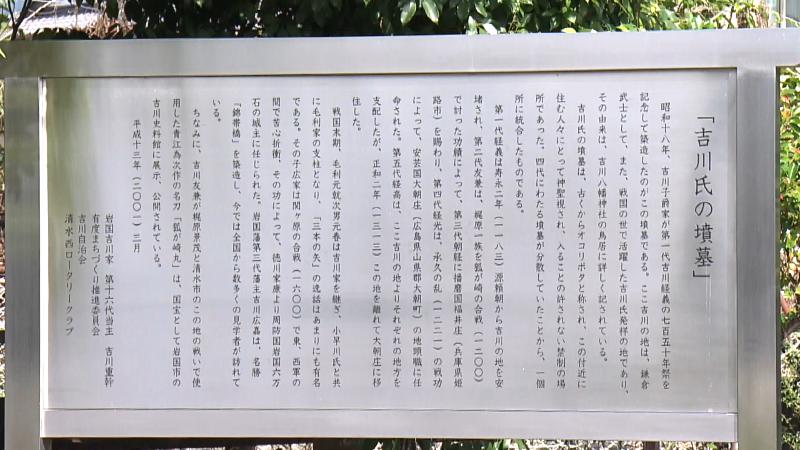 そこには説明書きがあり、「戦国の世で活躍した吉川氏発祥の地であり、その由来は吉川八幡(きっかわはちまん)神社の鳥居に詳しく記されている」とあります。
