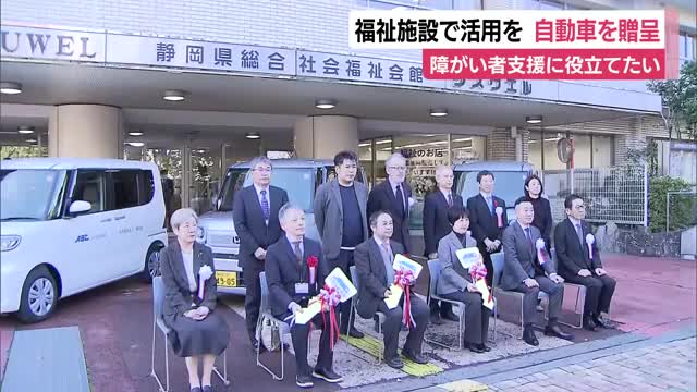 福祉施設で役立ててもらおうと静岡県静岡市の企業が障がい者支援などを行う3つの団体に車を贈りました。