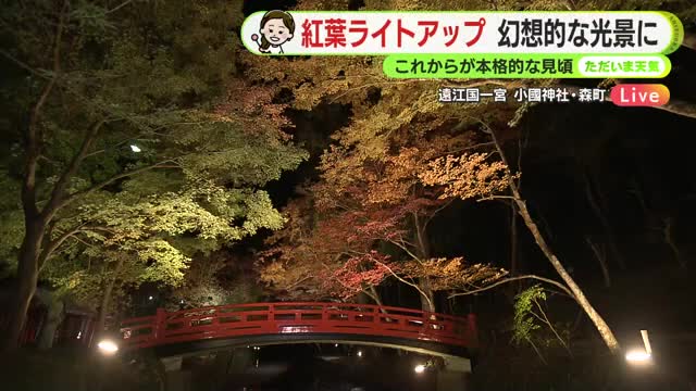 森町・小國神社でも紅葉は色づきが進んでいて、これから本格的な見頃に。ライトアップは12月7日まで行われているとのことで多くの人が訪れそうです。