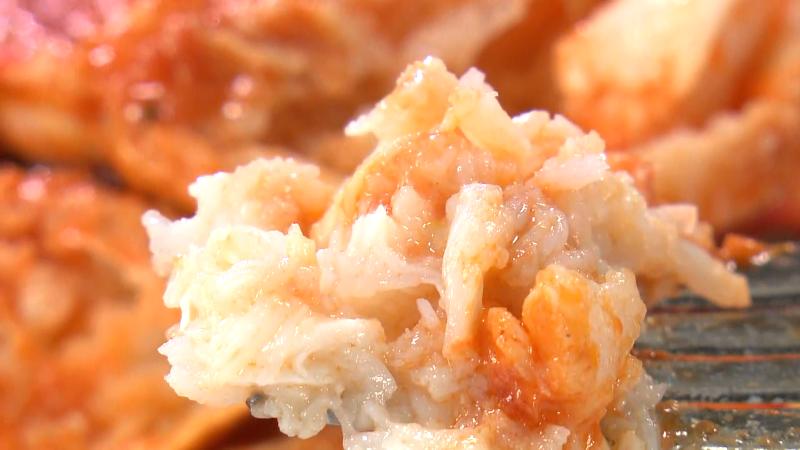 カニの体の部分は、フォークでほぐしながら取り出してみてください