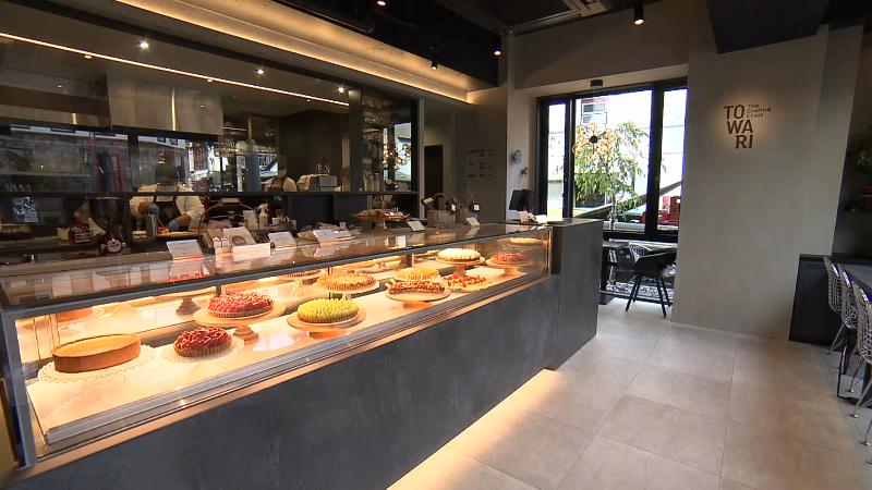 大きなショーケースにホールサイズのタルトが陳列されていて、オシャレで洗練されたデザインが印象的な店です。