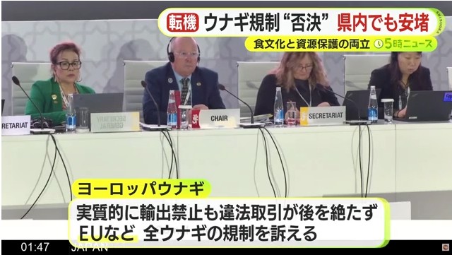ウナギ属漁業全体をみんなで守りましょう、ちゃんと取引や漁獲量を報告しましょうなど、この決議が(今後)全く履行されていないじゃないかということになると附属書の再提案が取りざたされる可能性が高くなると思う