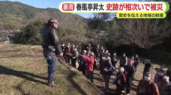昇太さんは、史跡の被害を確かめようと文化財の調査官・地元住民と勝間田城を訪れました。