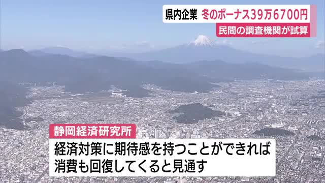 静岡県内企業の冬のボーナスについて、民間の調査機関が1人あたりの支給額を39万6700円と試算しました。