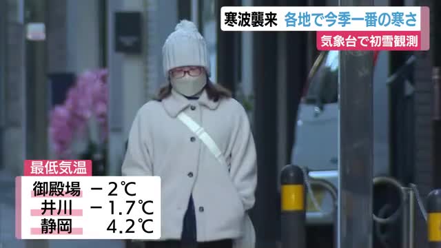 強い寒気の影響などで12月4日朝の静岡県内は各地で今シーズン一番の寒さとなりました。3日夜は気象台で初雪が観測されています。