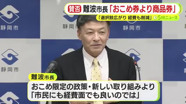 全国の自治体で対応に温度差が出ている”おこめ券”の配布について、静岡市の難波市長は消極的な考えを示しました。