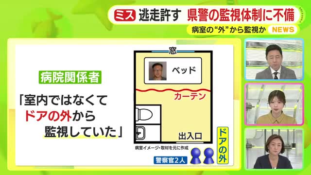 ただ、病院関係者の話によりますと「警察官は室内ではなくてドアの外から監視していた」との話が出ています。