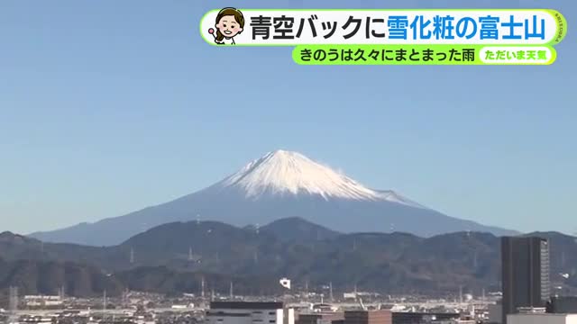 雨上がり、天気の回復とともに寒気が流れ込んでいます。最低気温は14日(日)よりも低い所が多く、浜松・静岡6℃台、富士・三島は3℃台で、この時期らしい冷え込みになりました。最高気温は、15℃を超えたのが静岡・稲取・三島・網代で12月上旬並。そのほかの地点は平年並で空気はひんやり。でした。