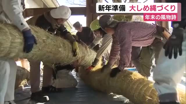 新しい年が近づく中、静岡県三島市にある三嶋大社で職人たちによって恒例のしめ縄づくりが行われました。