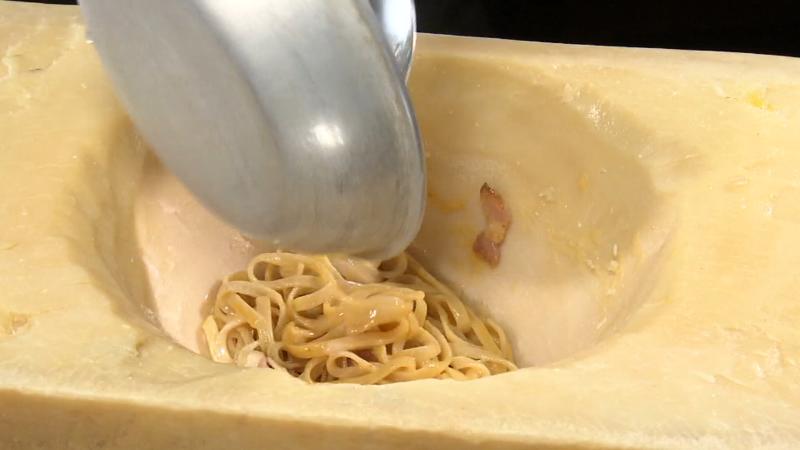 チーズを削ったものにパスタを入れてそのまま提供しています
