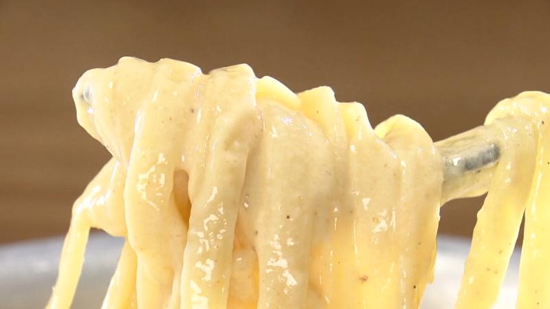 平打ちのパスタを通常よりも長めにゆでることで、チーズと絡めて提供する時にもちもちの食感になるんです。