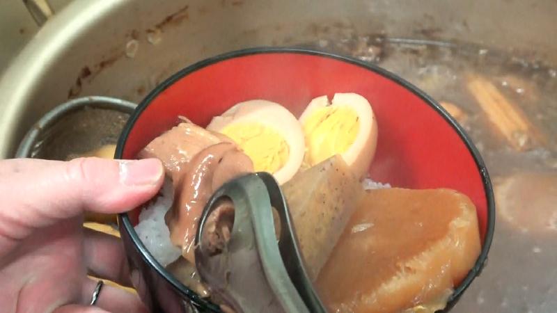 毎週食べにくるという常連客は、このおでんの味の大ファンです。