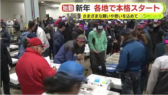 沼津魚市場は5日が初競りで威勢のいい掛け声とともに年末年始に水揚げされた魚が次々に競り落とされていきました。