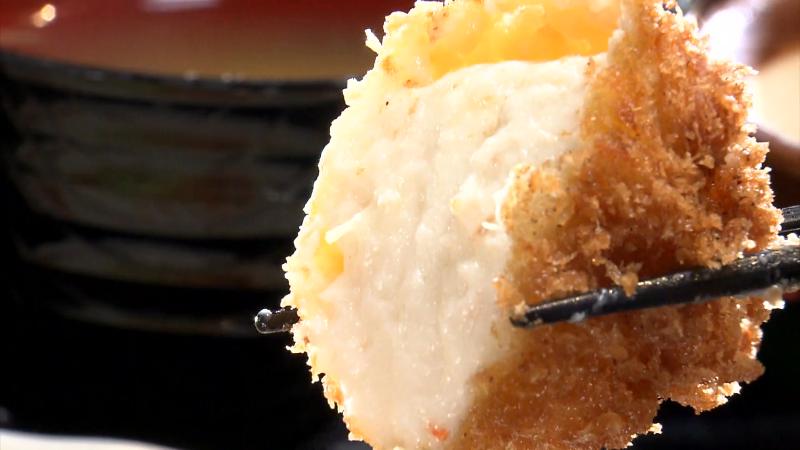 地元の丹那牛乳をふんだんに使った、カニクリームコロッケです。非常に甘みが強い牛乳で、それを引き出すような味付けをしています