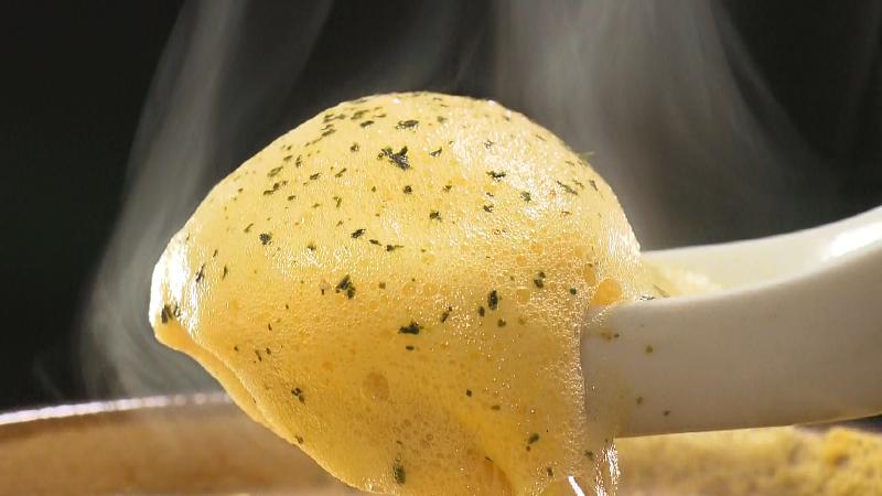 スプーンですくうと、ふわふわの卵がほろりと崩れます。たまごとスープを一緒にすくってください。
