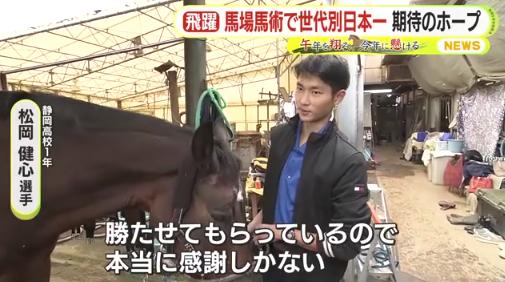 シリーズでお伝えしている「午年を翔る 今年に懸ける」。1月13日は馬場馬術の世界で将来有望な静岡県静岡市在住の高校生の話題です。