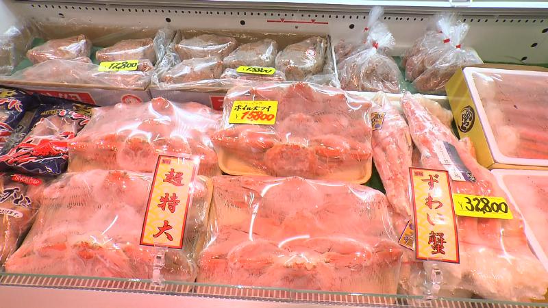 「カニをこれだけ置いているのはうちだけ」と店員が胸を張る品ぞろえです。