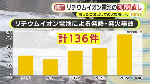 全国で相次ぐモバイルバッテリーなどリチウムイオン電池による発火。誤った捨て方による火災も相次いでいることから静岡市は2026年から使用済み電池の回収方法を拡充しました。