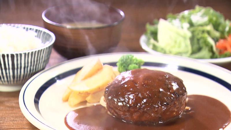 静岡・藤枝市にある「小川商店」は、お箸で食べられるふわふわハンバーグの専門店です。牛100%のジューシーハンバーグに冬の高級食材・カキを入れたクリーミーなソースをたっぷりかけた、季節限定のひと皿が自慢のメニューです。