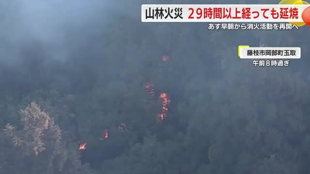 藤枝市の山林火災は発生から29時間あまりが経過した現在も延焼が続いています。消火活動は1月19日早朝から再開される見通しです。