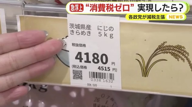 高値が続いているコメも現在は税込みで4515円の物が、消費税0%になると4180円で購入することが出来ます