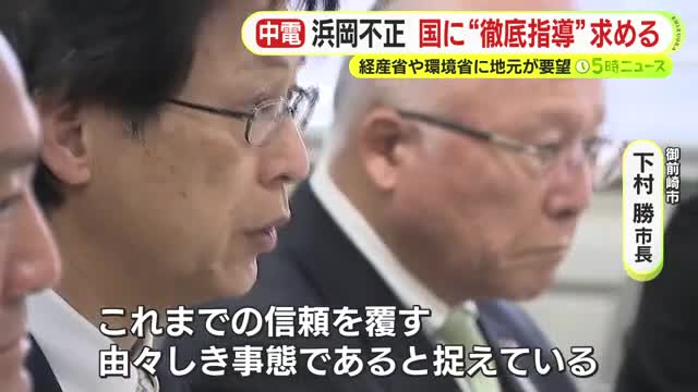 静岡県の浜岡原発でデータが不正に操作されていた問題を受け地元の市長たちが国に対して“徹底指導”を求めました。