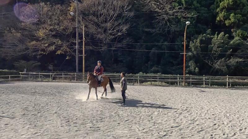 慣れてきたところで、走ってみることに。だんだん足の合図を強めにすると、キビキビとしたスピードになってきます。これが「速足(そくほ)」です。