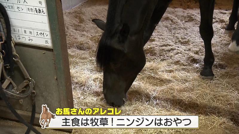 ウマが食べるといえばニンジンのイメージがありますが、ニンジンはどちらかというとおやつのようなものです。主食はやはり牧草です。厩舎の床に敷かれている牧草も食べるための牧草です。