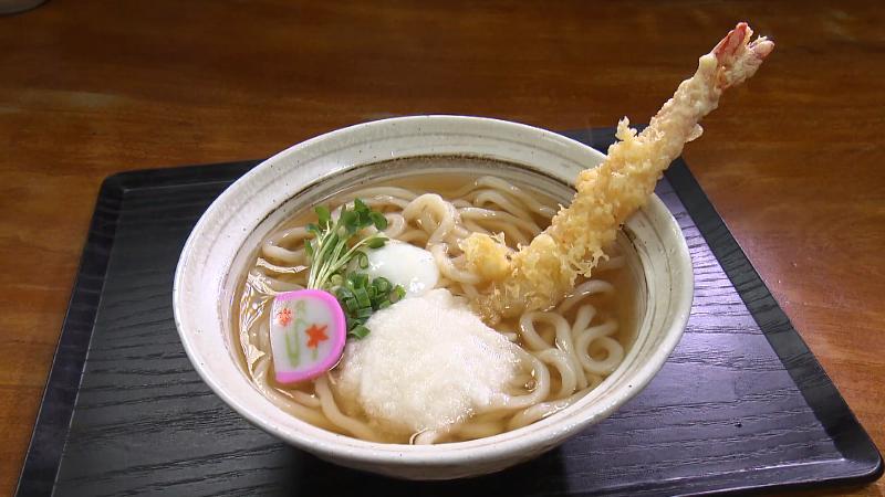 うどんのつゆは、昆布をベースにカツオだしなどいろいろ、おいしさの秘訣となっています。