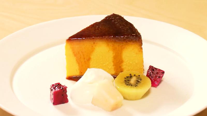 分厚い黄金色のプリンを一口食べると、その滑らかさに驚きます。口の中でゆっくりゆっくり溶けていきます。そして、カボチャの風味が広がります。