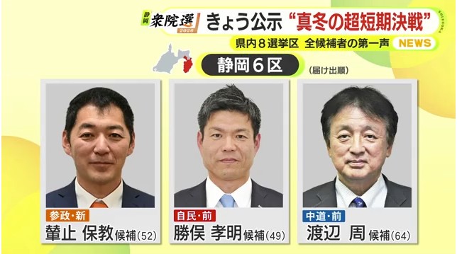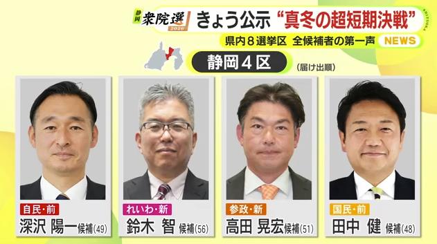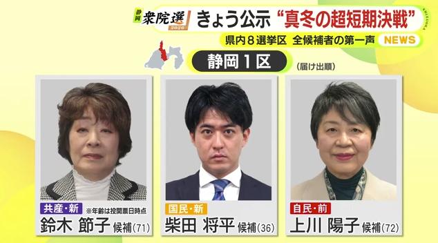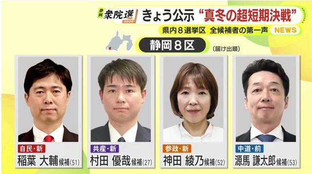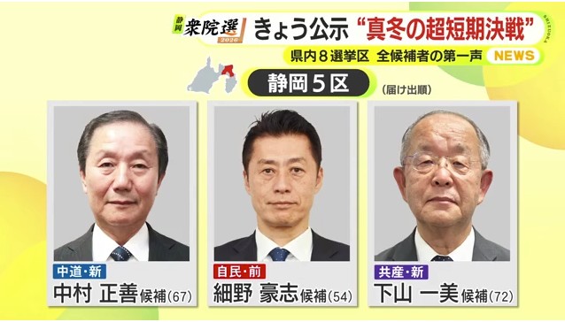 1月27日公示された衆議院選挙。静岡県内8つの小選挙区にあわせて26人が立候補しました。選挙区ごと候補者全員の顔ぶれと第一声を届け出順にお伝えします。