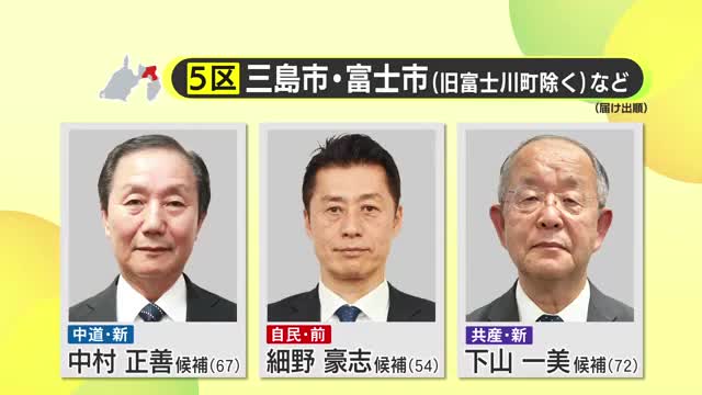 候補者の演説が日増しに熱を帯びている衆議院議員選挙。静岡県三島市や富士市などを選挙区とする静岡5区には3人が立候補しています。