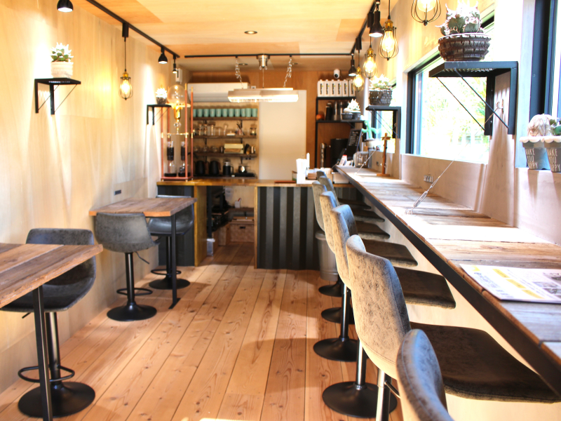 カフェの店内は、木のあたたかみを感じられる内装です。