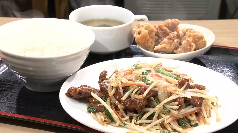 唐揚げかギョーザがセットで選べ、ボリューム満点です。