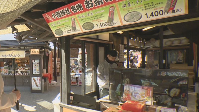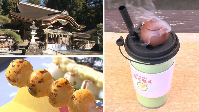 静岡・森町にある小國神社。参拝を済ませたら、2025年にオープンした「土鈴館」を見学しましょう。門前の「ことまち横丁」では、お茶の詰め放題や、カラフルな焼きたて団子、ピザを堪能することができます。